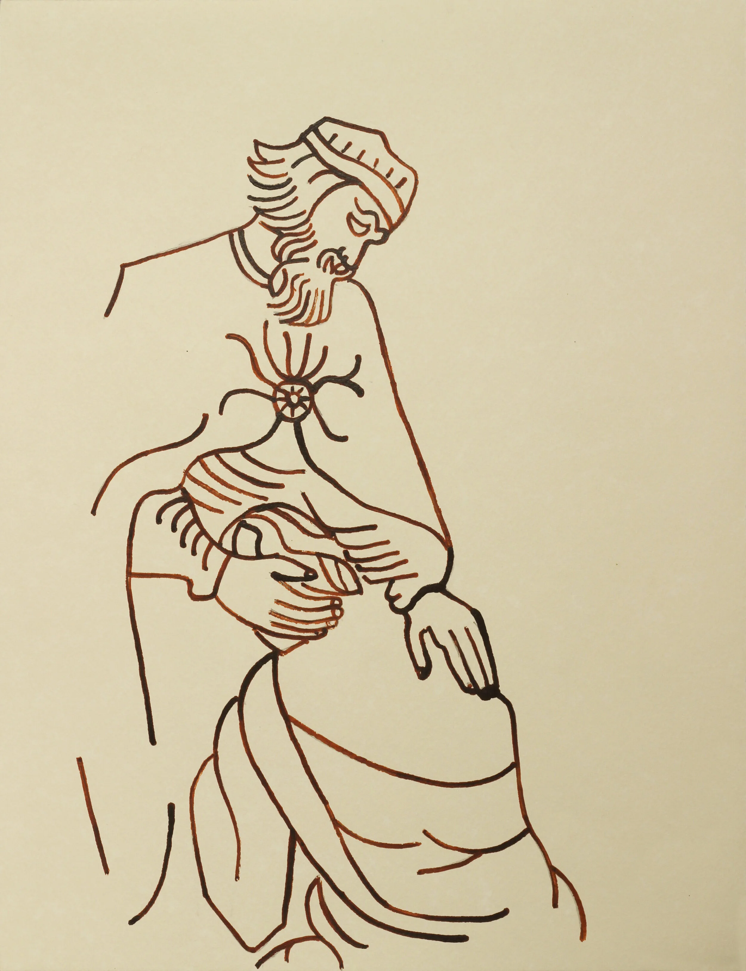 Beginning in 2008, I began making ink drawings, using burnt sienna pigmented ink on 10x13 Mi-teintes paper. As of July 2022, there are 2,055 drawings. This gallery is a small selection of some of these drawings.